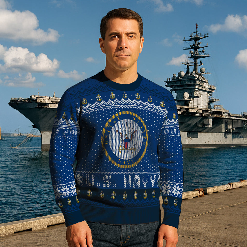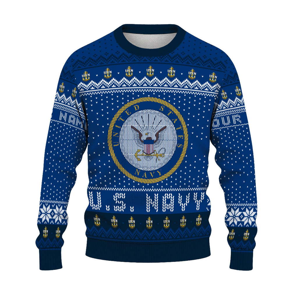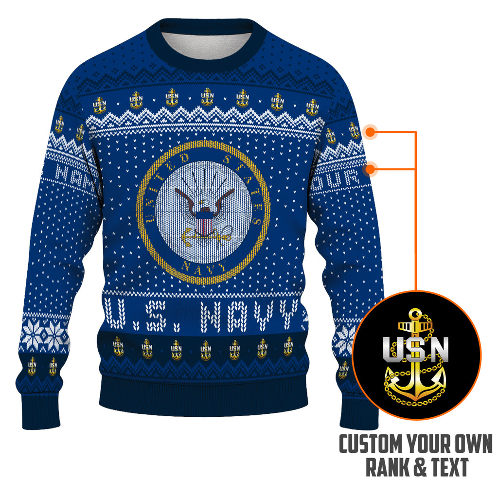 Custom Ranks And Text US Navy Ugly Christmas Sweater for Women Men TUST04