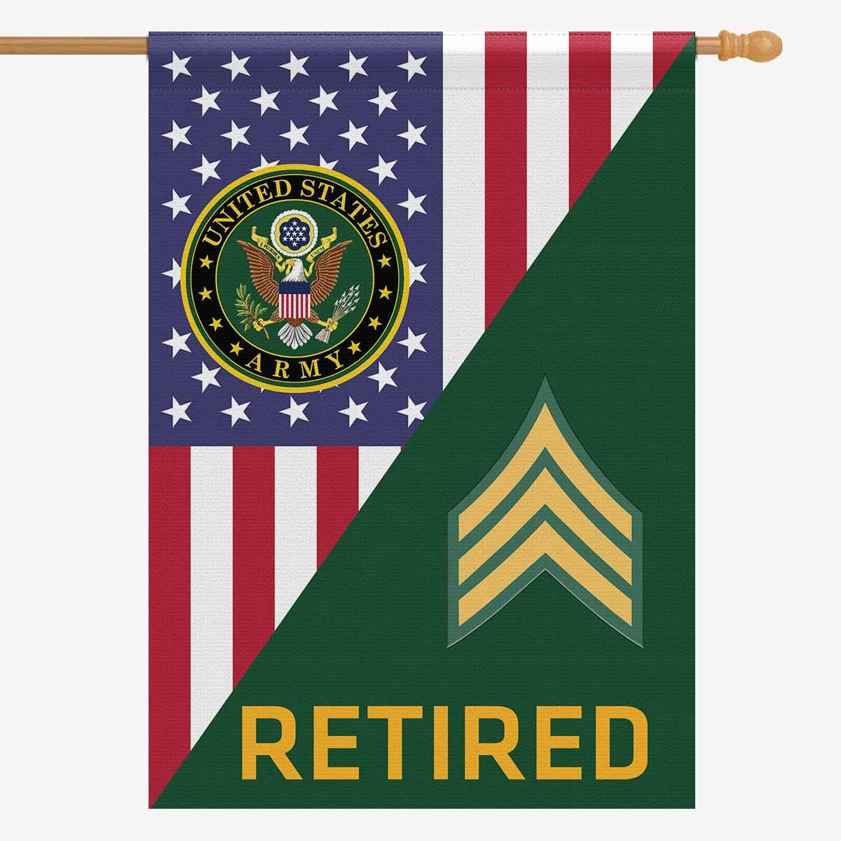 US Army E-5 Sergeant E5 SGT Retired House Flag 28 Inch x 40 Inch 2-Side Printing