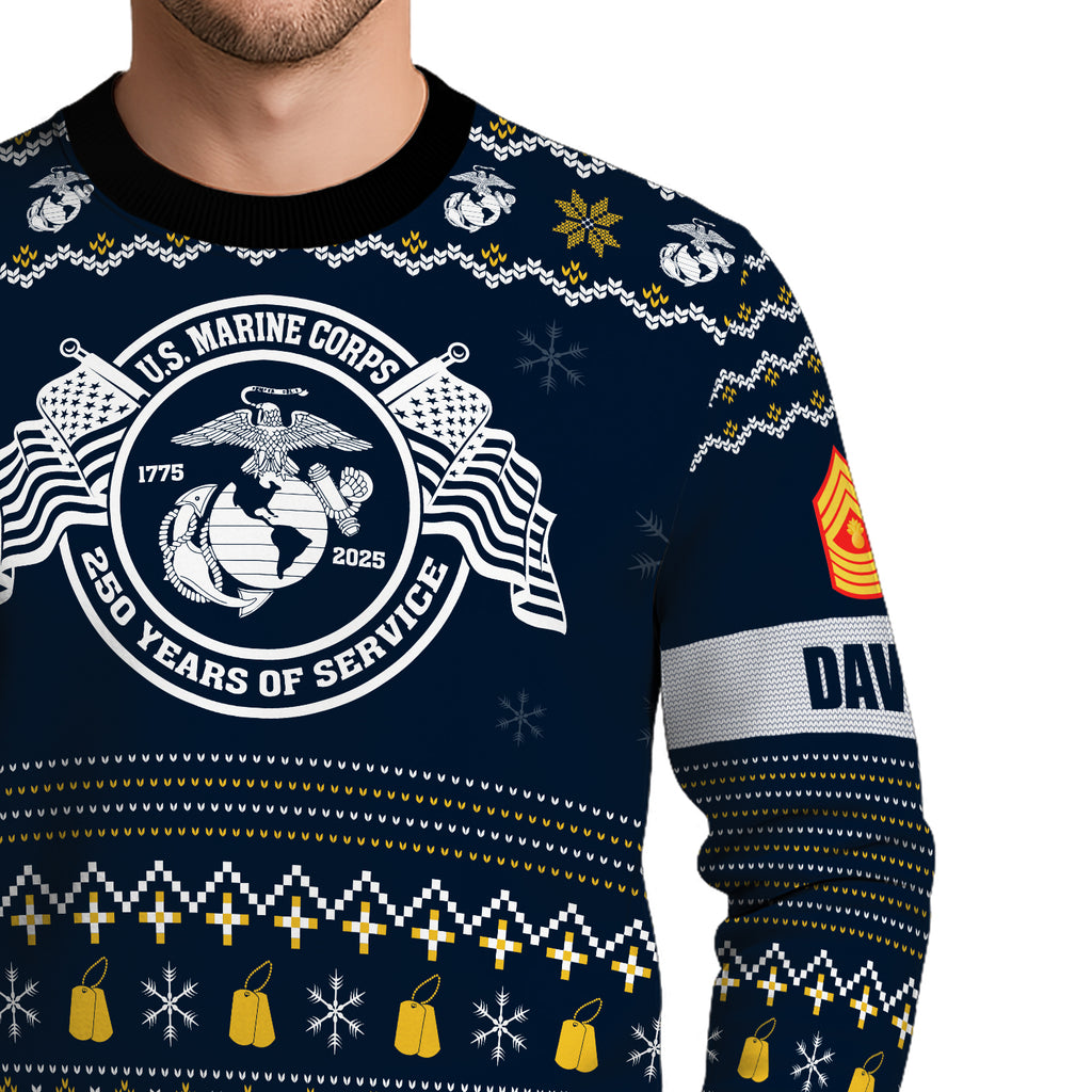 Custom Ranks And Text USMC Ugly Christmas Sweater for Women Men JUST04