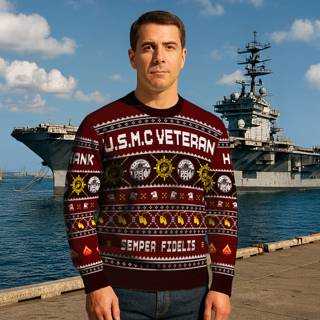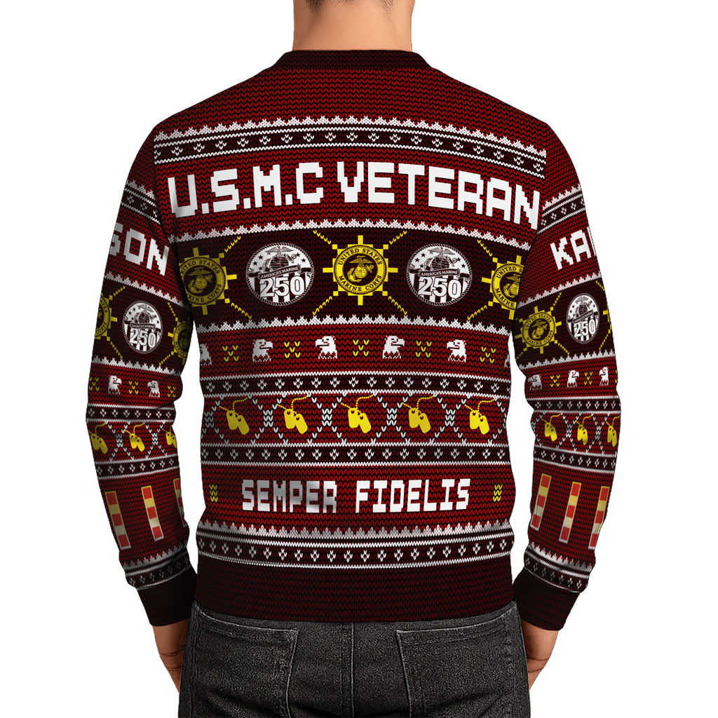 Custom Ranks And Text USMC Ugly Christmas Sweater for Women Men KAUST06