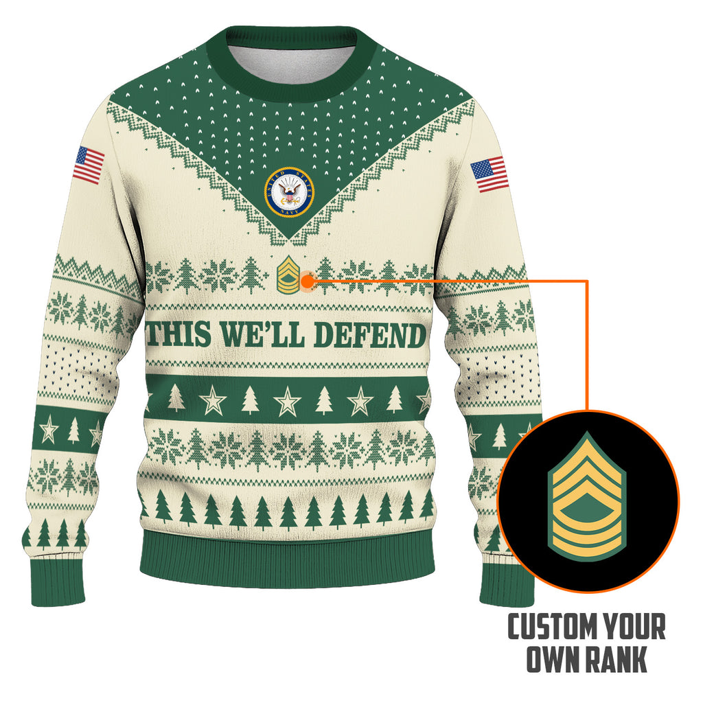 Custom Ranks US Army Ugly Christmas Sweater for Women Men TUST05