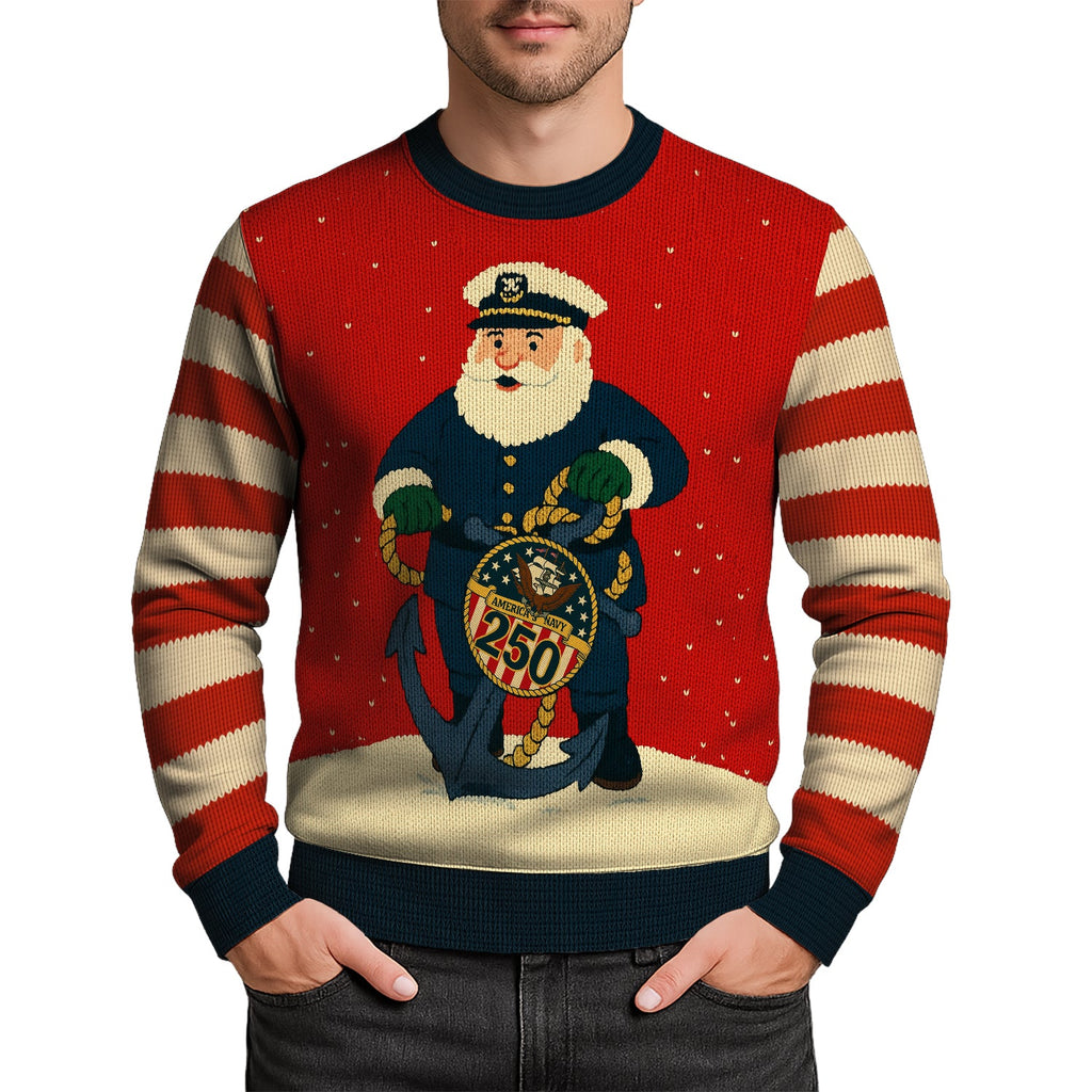 Honoring US Navy 250 Christmas Ugly Sweater