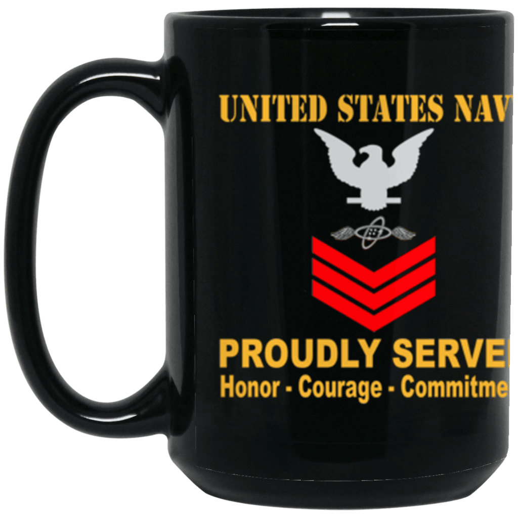 US Navy Aviation Electronics Technician Navy AT E-6 Red Stripe 15 oz. Black Mug
